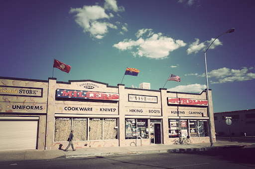 Miller’s Surplus Shops Location: 406 N. 6th Avenue Tucson, AZ 85705 Hours:Open Daily 9am-5pm Phone: 520-622-4777 Website: www.instagram.com/millerssurplusstore/ Serving Downtown Tucson since 1951. ← Heart of the Sun GalleryNew Empire Food Market → More in ShopsSuper ThriftSagebrush + SaguaroFusion Permanent JewelryFourth Avenue BarbershopForever TipsyBaniHouse of Hatters – Hat BarSixth Avenue Antiques